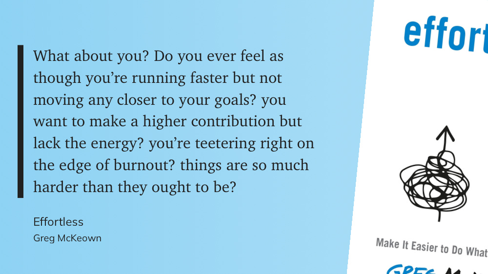 Akhirnya gw membaca buku Effortless yang ternyata ini ngena gw banget, belum selesai sih, tapi di prolognya udah berasa “this book is on my side”.