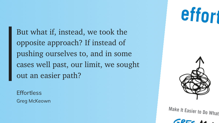 Bagaimana kalau hustle culture is not the only way? Bagaimana kalau setiap orang punya caranya masing-masing untuk mencapai tujuannya masing-masing? Bagaimana jika gw bisa mengeluarkan 40% tenaga untuk menghasilkan 80%? Itu yang gw jadiin pertanyaan setelah membaca bagian awal dari buku Effortless.